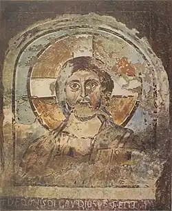 Treptat, imaginile devin tot mai narative, cu subiecte din cărțile sfinte, din care predomină cele referitoare la viața și minunile lui Isus. O dată cu creșterea importanței picturii, ca instrument educativ ce ilustrează triumful creștinismului, se stabilește și o iconografie creștină. Iisus apare reprezentat ca un bărbat matur, cu barba, păr negru sau castaniu până la umeri, în atitudini majestuoase, încadrat de Alfa și Omega (simboluri ale eternității) și cu aureolă pe cap.