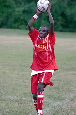 Un jucător aruncând mingea de la margine.