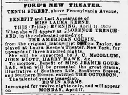 - 14 aprilie 1865, bilet la Ford's Theatre[nefuncțională]
