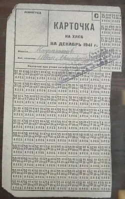 În aceeași zi s-a luat măsura unei noi reduceri a rațiilor alimentare: muncitorii primeau zilnic 500 g de pâine, alți angajați și copii 300 g, alți civili 250 g. Au fost reduse de asemenea rațiile de carne și crupe, dar au fost crescute rațiile de zahăr, dulciuri și grăsimi. Armata de uscat și Flota Mării Baltice aveau anumite rații de urgență, insuficiente însă pentru supraviețuirea de lungă durată. Flotila Lacului Ladoga era prost echipată și suferise pierderi importante din cauza bombardamentelor aviației germane. Mai multe barje cu cereale au fost scufundate în septembrie. Totuși, o mare parte a acestor cereale a fost recuperată de scafandri. Aceste cereale recuperate au fost folosite în cele din urmă la fabricarea pâinii. Când rezervele de făină de malț s-au epuizat, au fost folosiți substituenți, precum celuloza. Ovăzul pentru cai a fost de asemenea folosit, caii fiind hrăniți în schimb cu frunze.