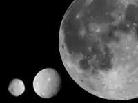 De la stânga spre dreapta: 4 Vesta, 1 Ceres, Luna