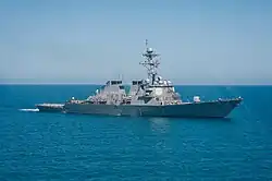 - ↑ ABC News staff (). „US warships launch cruise missile strike against Syrian airfield in retaliation for chemical attack”. ABC News Australia. Australian Broadcasting Corporation. Arhivat din original la . Accesat în .