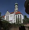 Turnul Perlach (Perlachturm) este, alături de clădirea primăriei, unul dintre simbolurile orașului. Construit în 1182, turnul se află în partea de vest a bisericii Sf. Peter. Clopotnița a fost construită de Elias Holl în 1614. Turnul a fost renovat în secolul al XVIII-lea. Înălțimea turnului este de 70,40 metri. Cine se încumetă să urce cele 261 de trepte este răsplătit cu o panoramă minunată a orașului.