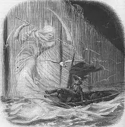 Ei zăresc o navă olandeză care se deplasează haotic, cu un marinar pe punte care rânjește, dând din cap în semn de salut. Încântați la început de perspectiva salvării din necazuri, ei devin rapid îngroziți când nava se apropie, aceasta având un miros îngrozitor. Ei își dau seama în curând că marinarul aparent vesel este, de fapt, un cadavru proptit în balustrada navei, rânjetul datorându-i-se faptului că fața sa era parțial descompusă deoarece un pescăruș se hrănea cu carnea de pe ea. În timp ce nava trece pe lângă ei, devine clar faptul că toți ocupanții navei sunt cadavre aflate în stare de putrefacție.