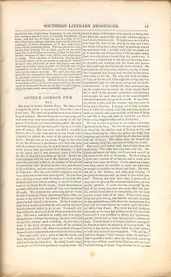 Prima parte a versiunii serializate a Aventurilor lui Arthur Gordon Pym a apărut în Southern Literary Messenger în ianuarie 1837.