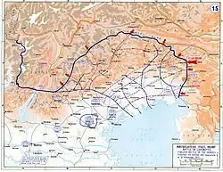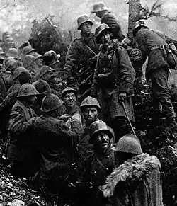 - ↑ Date incerte. Din cele 40.000 de pierderi umane italiene, circa 35.000 au fost prizonieri: 4.000 capturați de 22 Schützen, 700 de 55, 7.000 de 50, 12.000 de 12 sileziană, 4.000 de Alpenkorps, câteva mii de 20 și 4.600 de 1. Vedeți Silvestri 2006, pp. 165-166