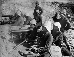 La 27 octombrie, Goeben și Breslau, rebotezate Yavûz Sultân Selîm și respectiv Midilli, au ieșit în Marea Neagră, au bombardat portul rus Odesa și au scufundat câteva vase rusești.[25] Otomanii au refuzat cererile Antantei de a expulza misiunile germane și, la 31 octombrie 1914, au intrat oficial în război de partea Puterilor Centrale.[26][25] Rusia a declarat război Turciei la 2 noiembrie. A doua zi, ambasadorul britanic a plecat de la Constantinopol și vasele britanice din largul Dardanelelor au bombardat cetățile defensive de la Kum Kale și Seddulbahir. Un proiectil a lovit un depozit de arme, a împrăștiat armele și a ucis 86 de soldați.[27]