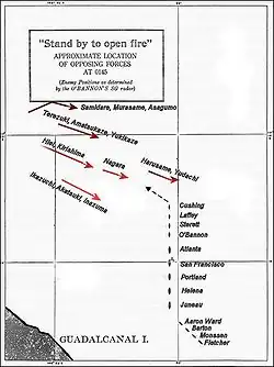 - ↑ Kilpatrick, Naval Night Battles, p. 109; Hammel, Guadalcanal: Decision at Sea, p. 318.