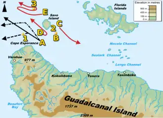 - ↑ Hammel, Guadalcanal: Decision at Sea, p. 352, 363; Morison, Struggle for Guadalcanal, p. 270–272.