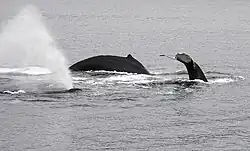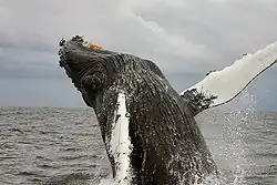 | Balenă cu cocoașă după efectuarea unei sărituri | |
