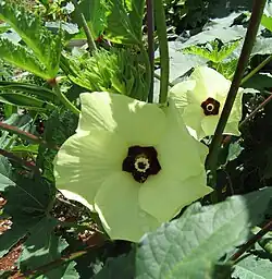 Este o plantă anuală care crește până la 2 m înălțime. Frunzele au 10–20 cm lungime și sunt late, palmate, având 5–7 lobi. Florile au un diametru de 4–8 cm, cu 5 petale gălbui, adesea cu o pată roșie la baza fiecărei petale. Fructul este o capsulă verde și păroasă cu lungimea de 8–20 cm și conține numeroase semințe.