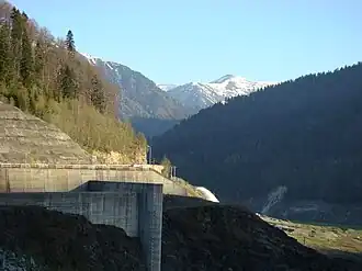 - ↑ „Barajul Gura Apelor si CHE Riul Mare Retezat”. Hidroconstrucția. Arhivat din original la . Accesat în .