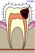 De asemenea există posibilitatea formării de bule de azot în cavitatea pulpară ceeace constituie un accident de decompresie și trebuie tratat ca atare.