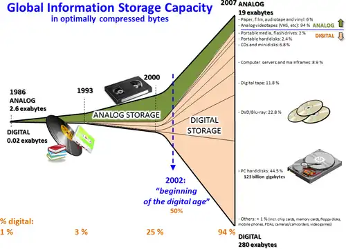 - ↑ Hilbert, Martin; López, Priscila (). „The World's Technological Capacity to Store, Communicate, and Compute Information”. Science. 332 (6025): 60–65. Bibcode:2011Sci...332...60H. doi:10.1126/science.1200970. PMID 21310967. Accesat în .