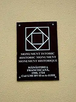 Ambele monumente sunt înscrise în Lista Monumentelor Istorice sub nr. 423, cod BV-II-a-A-11559 Mănăstirea Franciscană, și nr. 424, cod BV-II-m-A-11559.01 Biserica "Sf. Ioan", a Mănăstirii Franciscane.[1]