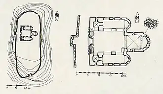![]() Biserica fortificată din Cisnădioara ![]() Machetă - Reconstituire pentru biserica din Cisnădioara ![]() Planul fortificaţiei din Cisnadioara[2] | |