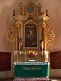 Pe lângă fragmentele de pictură din interiorul bisericii sau din ambrazurile ferestrelor, un important ansamblu de pictură se găsește într-o capelă din turnul de est. Pictura de aici, realizată între anii 1460-1470 a fost acoperită cu var după Reformă și curățată în anii 1920. Iconografia acestei picturi se evidențiază printr-o remarcabilă sinteză între pictura apuseană și cea bizantină. Tema dominantă a acestui ansamblu este Judecata de Apoi. Alte scene sunt inspirate din viața Fecioarei Maria, dar apar și figuri de sfinți apostoli, precum și scena Răstignirii lui Iisus.[1]
