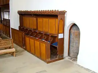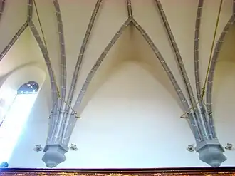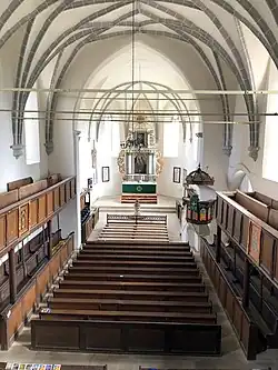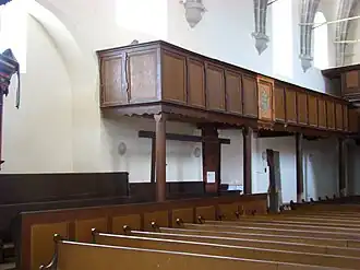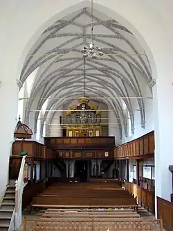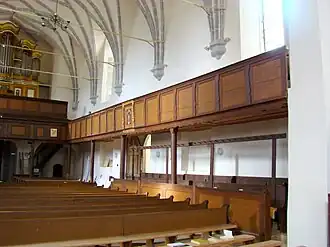 În secolul al XVIII-lea, pe trei laturi ale sălii au fost construite balcoane, pe cel vestic fiind amplasată orga.jpg)