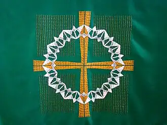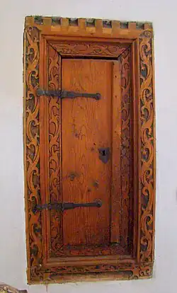 - ↑ Portal = Intrare monumentală într-un edificiu religios, bogat ornamentat. Portalul are ca elemente componente: un lintel, un timpan, un arc de descărcare și doi montanți ( adeseori cu colonete ). Portalul are adesea prevăzute ancadramente în trepte și este decorat cu reliefuri.