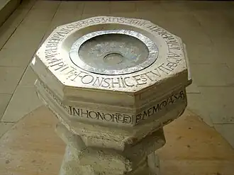 În sacristie se află o altă cristelniță datând din 1709.jpg)