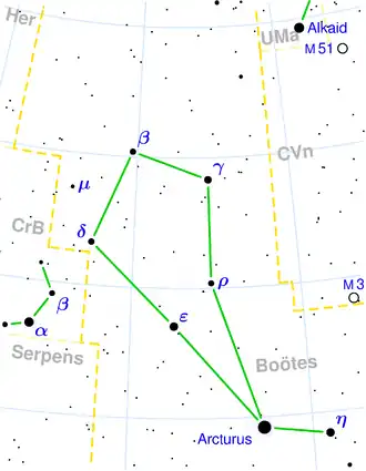 Arcturus este unul dintre vârfurile asterismului cunoscut sub numele de Triunghiul de Primăvară, celelalte două vârfuri fiind reprezentate de către stelele α Virginis (Spica) și β Leonis (Denebola).