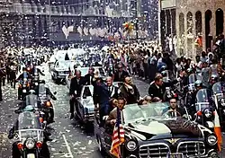 De la extremitatea sudică până la City Hall Park, Broadway este locul istoric unde se desfășoară marile defilări populare pentru sărbătorirea victoriilor și aventurilor. Se aruncă confetti și serpentine din hârtie (de unde numele lor englezesc, „Ticker-tape parade”, întrucât erau făcute din benzi de teleimprimator decupate). Prima din aceste parade a avut loc în 1886, pentru inaugurarea Statuii Libertății.[2] Multe celebrități au avut dreptul la „ticker-tape parade”, între care Charles Lindbergh, Charles de Gaulle, astronauții Neil Armstrong, Edwin Aldrin și Michael Collins, cât și numeroși șefi de stat sau echipe sportive.