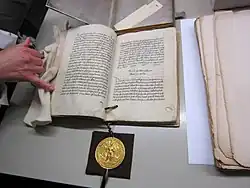 ![]() Sigiliul de Aur care a dat numele documentului (exemplarul din Trier) | |
