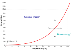 ![]() Curba de saturație a apei în coordonate temperatură-presiune | |