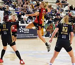 - ↑ digisport.ro. „CSM București - Savehof 27-22. Campioana a terminat grupa pe locul 2”. Accesat în .