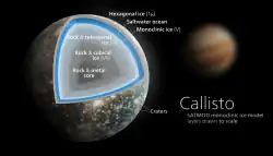 - ↑ Nagel, K.a; Breuer, D.; Spohn, T. (). „A model for the interior structure, evolution, and differentiation of Callisto”. Icarus. 169 (2): 402–412. Bibcode:2004Icar..169..402N. doi:10.1016/j.icarus.2003.12.019.
