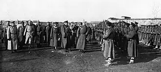 - ↑ Divizia rusă de pe frontul din Salonic a fost demobilizată ca urmare a stării de spirit revoluționare a soldaților (ru Ю. А. Писарев (Iu. Pisarev), Русские войска на Салоникском фронте (Trupele ruse pe frontul din Salonic) — «Исторические записки», 1967, Т. 79, С. 131 – 138)