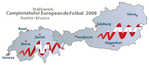 | Fußball-Europameisterschaft 2008 (în germană) Championnat d'Europe de football 2008 (în franceză) Campionato europeo di calcio 2008 (în italiană) Campiunadi d'Europa da ballape 2008 (în retoromană) | |