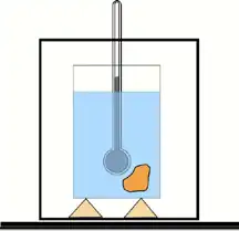 unde: capacitatea termică masică de determinat, masa corpului a cărei capacitate termică se determină; capacitatea termică masică a vasului calorimetric; masa vasului calorimetric; capacitatea termică masică a lichidului calorimetric, masa lichidului calorimetric; temperatura inițială a vasului și lichidului calorimetric; temperatura inițială a corpului a cărei capacitate termică se determină; temperatura finală de echilibru a sistemului.