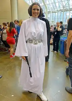 Carrie Frances Fisher[20] (n. , Beverly Hills, California, SUA – d. , Los Angeles, California, SUA) a fost o actriță, scenaristă și producătoare de film americană. A devenit faimoasă pentru rolul prințesei Leia Organa din filmul Războiul stelelor. Alte roluri mai importante sunt cele din comedia romantică Șampon (1975), Frații Blues (1980), Hannah și surorile ei (1986), comedia neagră Vecinii (1989), Când Harry a cunoscut-o pe Sally (1989). Carrie Fisher este și autoarea unui roman autobiografic Postcards from the Edge (Salutări de la Hollywood) și scenariul pentru filmul cu același nume.