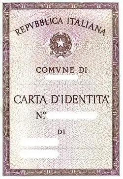 Toți cetățenii italieni au dreptul să solicite carte de identitate care să fie eliberat de municipalitatea în care trăiesc. Cartea de identitate are durată de valabilitate de zece ani.[8] Nu este obligatorie purtarea cărții de identitate permanent. La solicitarea autorităților pentru identificare poate fi prezentat orice act care stabiliește identitatea.