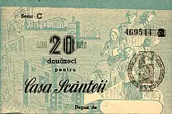 O parte din fonduri s-a colectat prin subscripție publică „benevolă”, salariații primind astfel de tichete, care justificau lipsa banilor. Acestea aveau valorile de 5, 10, 20 (în imaginea alăturată), 30, 50, 100, 200, 500 și 1000 de lei.