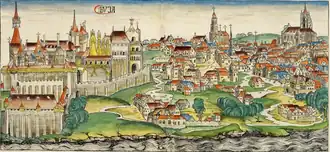 ![]() Vedere a castelului de pe malul estic al Dunării. | |