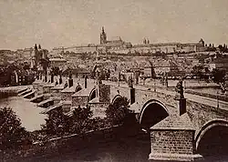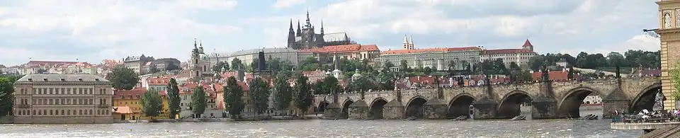 Cetatea din Praga și, în prim plan, Podul Carol peste Vltava văzute din Orașul Vechi.