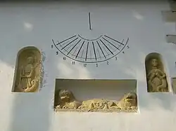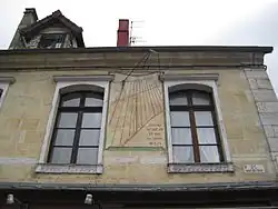Cadran solar pe o casă din Pontarlier (Franța), cu analemă de corectare a timpului.
