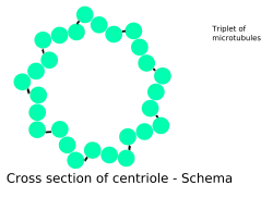 Schemă a unui centriol indicând tripletele de microtuburi