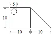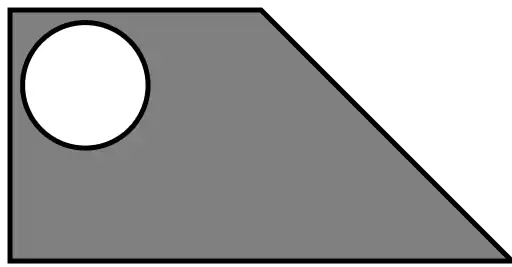 Forma este ușor de divizat într-un pătrat, triunghi și cerc. De notat că cercul va avea arie negativă.