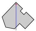 | Pasul 1: O formă arbitrară 2D. | Pasul 2: Se suspendă forma într-o locație apropiată de margine. Se lasă să cadă firul cu plumb și se marchează pe obiect. | Pasul 3: Se suspendă forma într-o altă locație nu prea apropiată de prima. Se marchează din nou firul cu plimb. Intersecția celor două linii este centru de masă. |