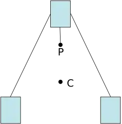 ![]() Două corpuri cu mase diferite gravitează în jurul baricentrului precum sistemul Pluto–Charon. |