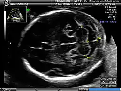 - ↑ Campbell J, Gilbert WM, Nicolaides KH, Campbell S (august 1987). „Ultrasound screening for spina bifida: cranial and cerebellar signs in a high-risk population”. Obstetrics and Gynecology. 70 (2): 247–50. PMID 3299184.