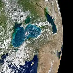 Cele mai multe veri, nuanțe verde-albăstrui apar în Marea Neagră. Vârtejurile turcoaz indică prezența fitoplanctonului, care urmărește fluxul curenților de apă.