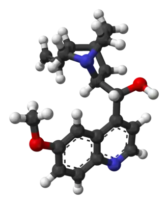Chinina este un alcaloid chinolinic-chinuclidinic utilizat ca medicament antimalaric, în tratamentul malariei, dar și al babesiozei.[7] În prezent, utilizarea sa în malaria cauzată de Plasmodium falciparum se aplică în special pentru cazurile de rezistență la clorochină și lipsa disponibilității artesunatului.[7][8] Căile de administrare disponibile sunt cea orală și intravenoasă.[7] Există zone geografice în care există malarie rezistentă la chinină.[7]