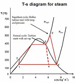 Randamentul termic al oricărui ciclu termodinamic poate fi crescut prin ridicarea temperaturii medii a sursei calde a ciclului. Creșterea temperaturii aburului prin supraîncălzire are exact acest efect.[10][20]