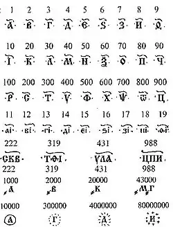 Cifrele chirilice constituie baza unui sistem de numerație dezvoltat la sfârșitul secolului al X-lea în Țaratul Bulgar, derivat din sistemul de numerație grecesc și din alfabetul chirilic. Cifrele chirilice au fost folosite și în Rusia până în secolul al XVIII-lea, când țarul Petru I a dispus înlocuirea lor cu cifrele arabe.