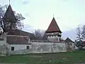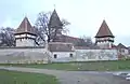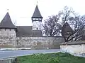 Biserica prezentând un turn la vest este ridicată în 1427. La jumătatea secolului al XV-lea este ridicată prima incintă și este adăugat un etaj de apărare deasupra corului. Acesta prezintă o galerie scoasă în exterior, rezolvarea fiind este de tip hourds, varianta în demiboisage consistând într-o structură de susținere din lemn completată cu paiantă [3].