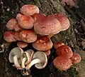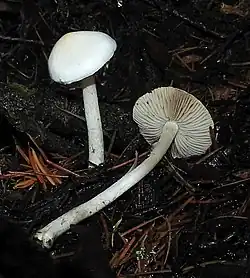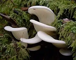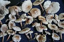 ![]() | Phaeolepiota aurea | Ciuperci aurii | Gustos, dar crud sau prea puțin fiert foarte toxic, conținând HCN.[121] | <![]() | Pleurocybella porrigens | Aripi de înger | Toxicitate: Poate să fie letal! Confuzie posibilă cu Pleurotus ostreatus var. florida.[122] | ![]() | Pluteus salicinus | Păstrăv de salcie | Toxicitate: Crud sau uscat otrăvitor, psihedelic. Fiert comestibil.[123] | |